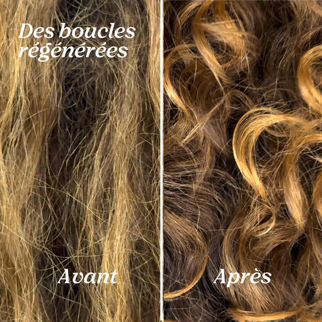 💡 La Cure agit au cœur de la fibre : elle reprotéine le cheveu, renforce sa structure interne et aide à restaurer ce qui donne naturellement forme aux boucles.