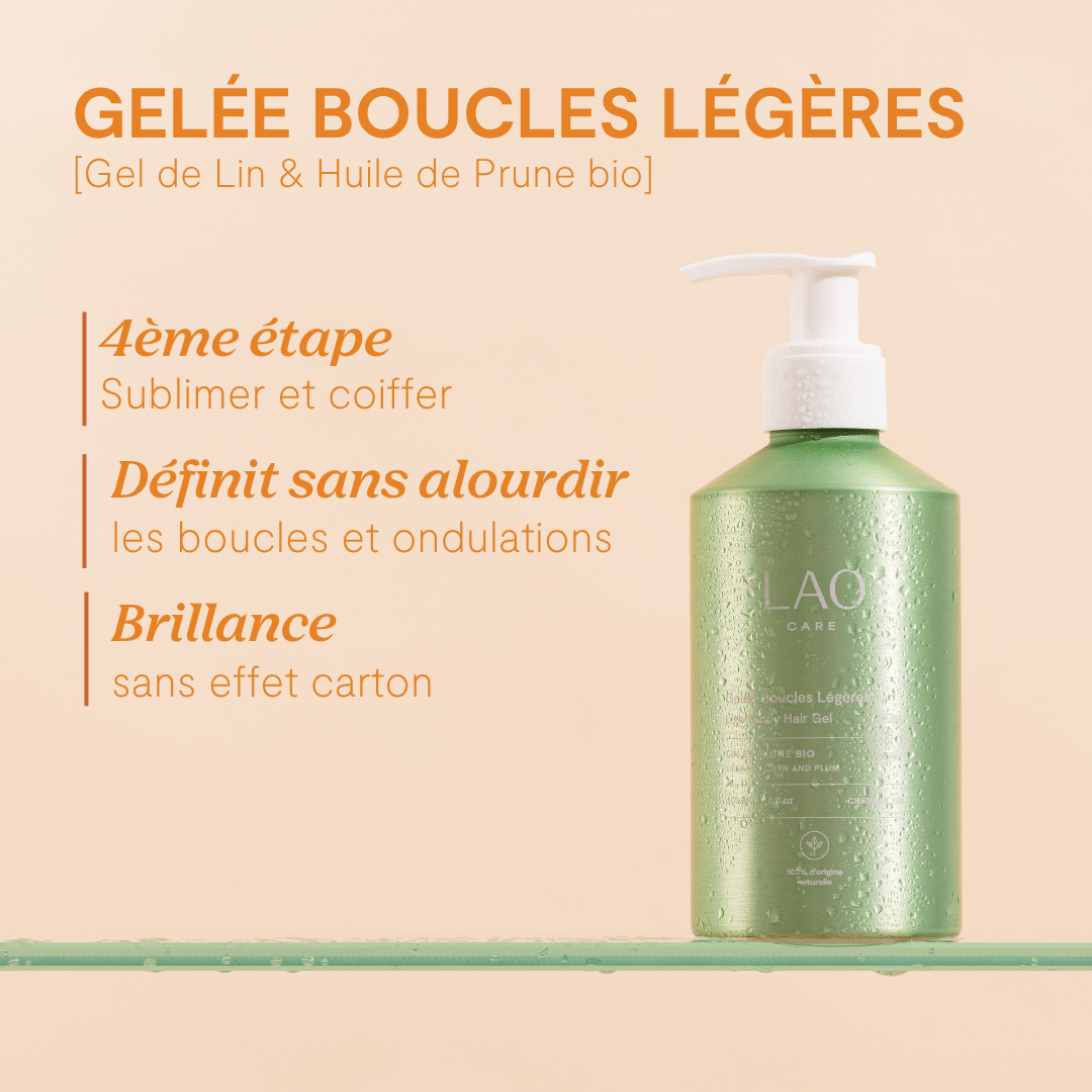 Pour une définition optimale et une tenue longue durée, appliquez 3 à 4 pompes de Gelée Boucles Légères LAO Care. Cette quantité permet d’enrober uniformément la fibre, de structurer chaque boucle et de garantir un maintien durable — sans effet carton.
