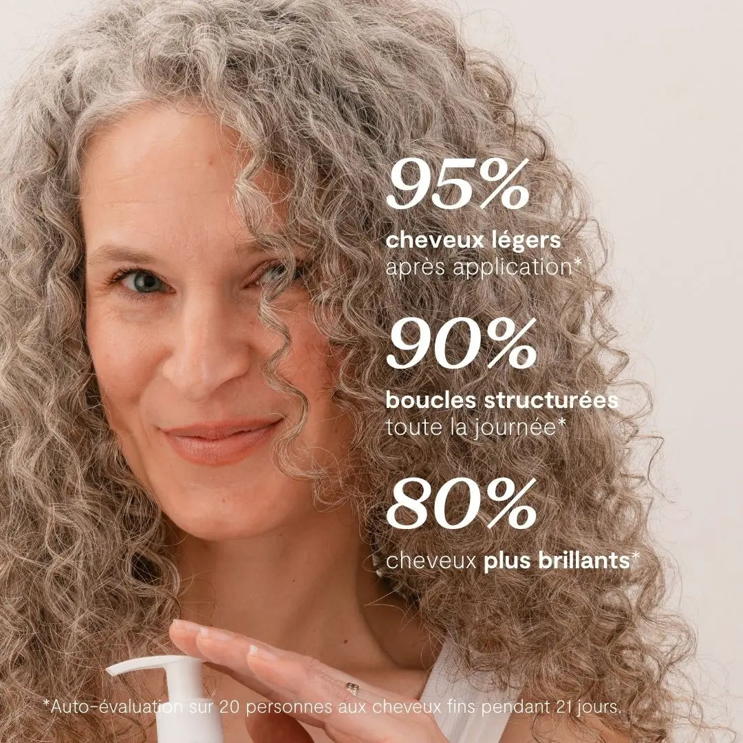 Une formule hautement concentrée en actifs d’origine naturelle, pensée pour révéler la beauté des boucles avec justesse — sans jamais compromettre leur légèreté.