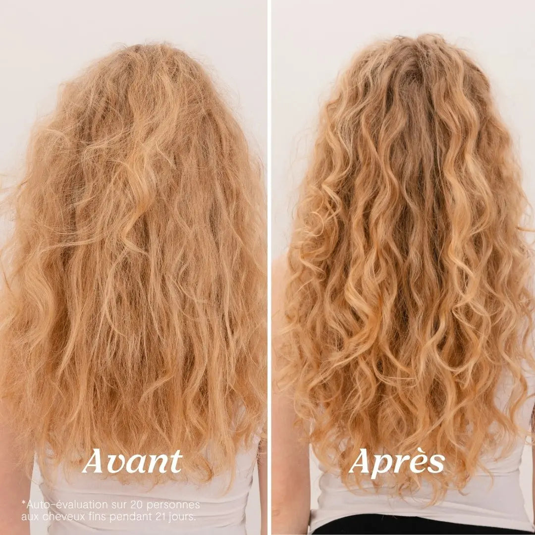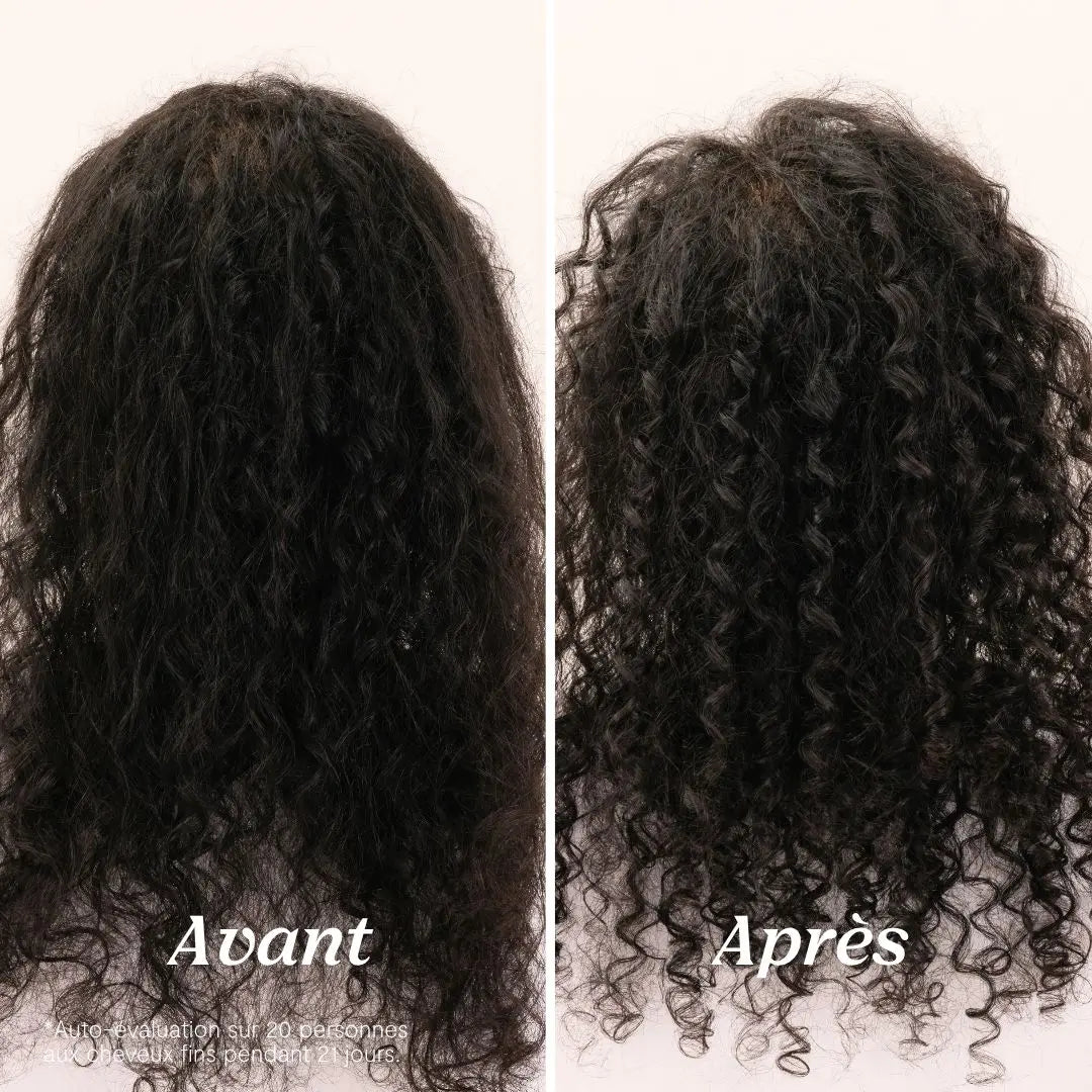 *Auto-évaluation sur 20 personnes aux cheveux fins pendant 21 jours.